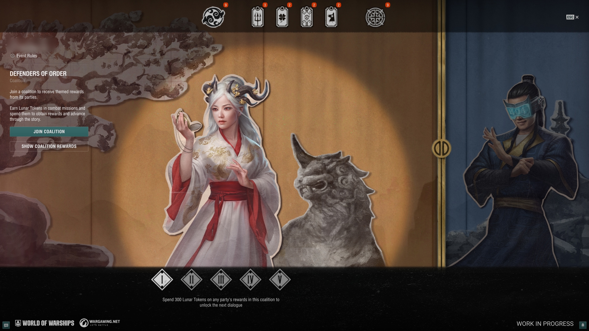 - Wydając Księżycowe Żetony zwiększacie poziom postępu narracyjnego swoje koalicji. Odkryjecie historię bestii Nian i zdobędziecie jeszcze więcej tematycznych nagród: pamiątkowe flagi, stałe kamuflaże, dowódców Zhulong i Hundun z indywidualnymi ścieżkami dialogowymi oraz efekty zniszczenia "Miecze porządku" i "Siła chaosu". Zestaw nagród różni się dla każdej koalicji.