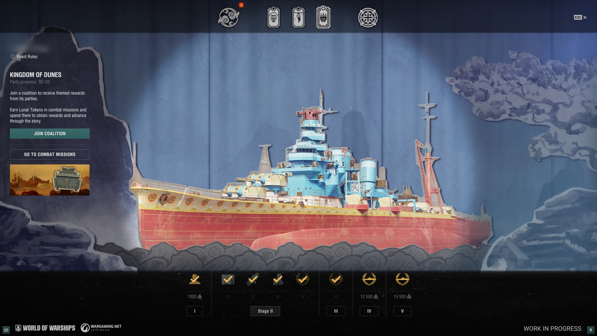 - za ukończenie wszystkich misji bojowych, aktywne wypełnianie tabeli wyników w aktualizacji 15.0, zbierając nagrody za logowanie i z dziennych kontenerów, będzie można zdobyć razem 45.700 żetonów – wystarczająco dużo, by ukończyć pełną linię jednej drużyny – nawet tak trudnej jak Kingdom of Dunes. Ogólnie możecie zdobyć do 5 okrętów tierów niższych niż X lub 4 okręty w tym jeden tieru X, w zależności jak wydacie żetony.