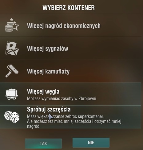 Zdobycie kontenera “Spróbuj szczęścia” liczy się potrójnie do postępu zdobywania superkontenera. Przy regularnym zdobywaniu dziennych kontenerów z wyborem tej opcji możemy liczyć na superkontener raz w tygodniu. Jeśli nie - to w drugim tygodniu będą dwa.