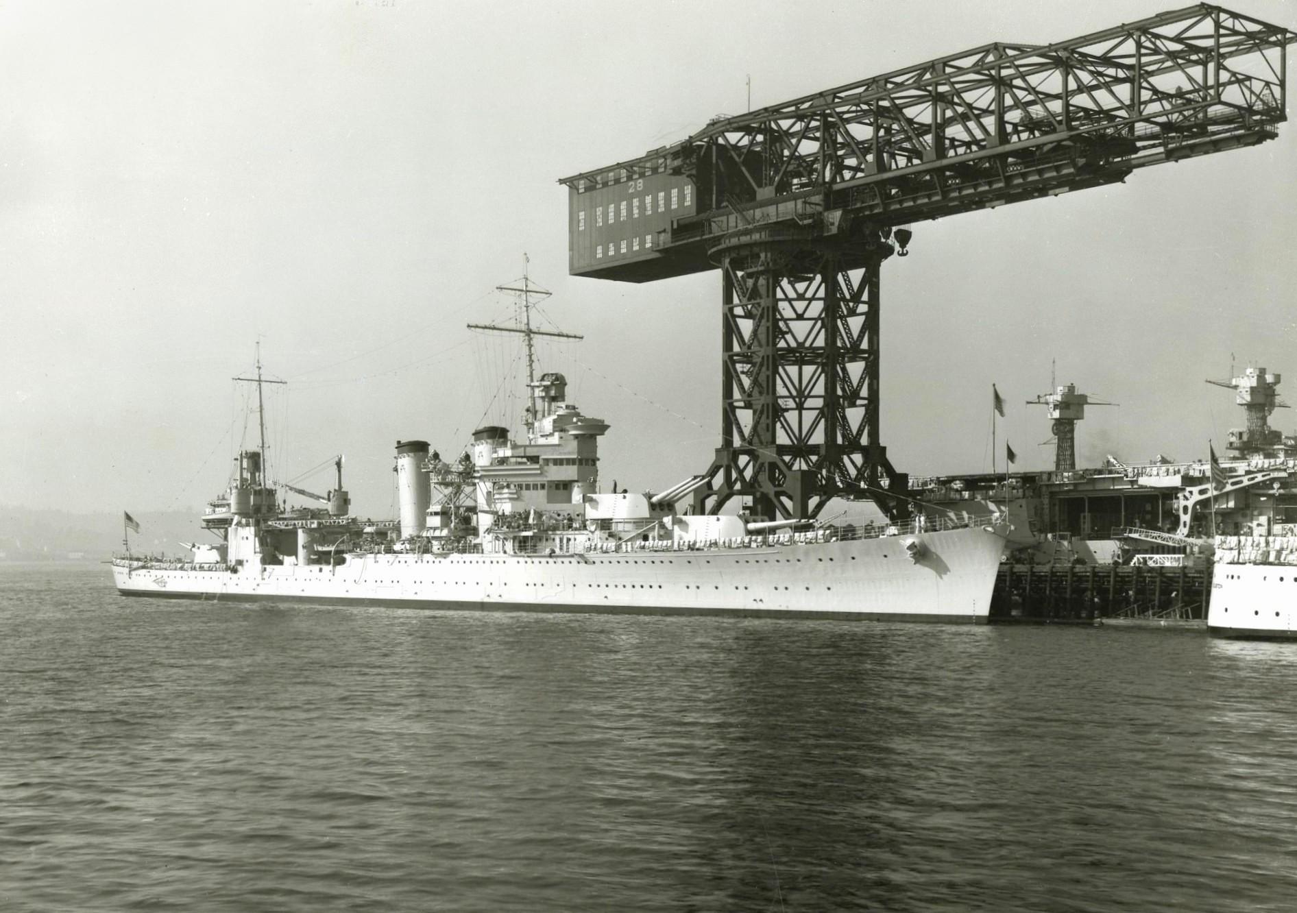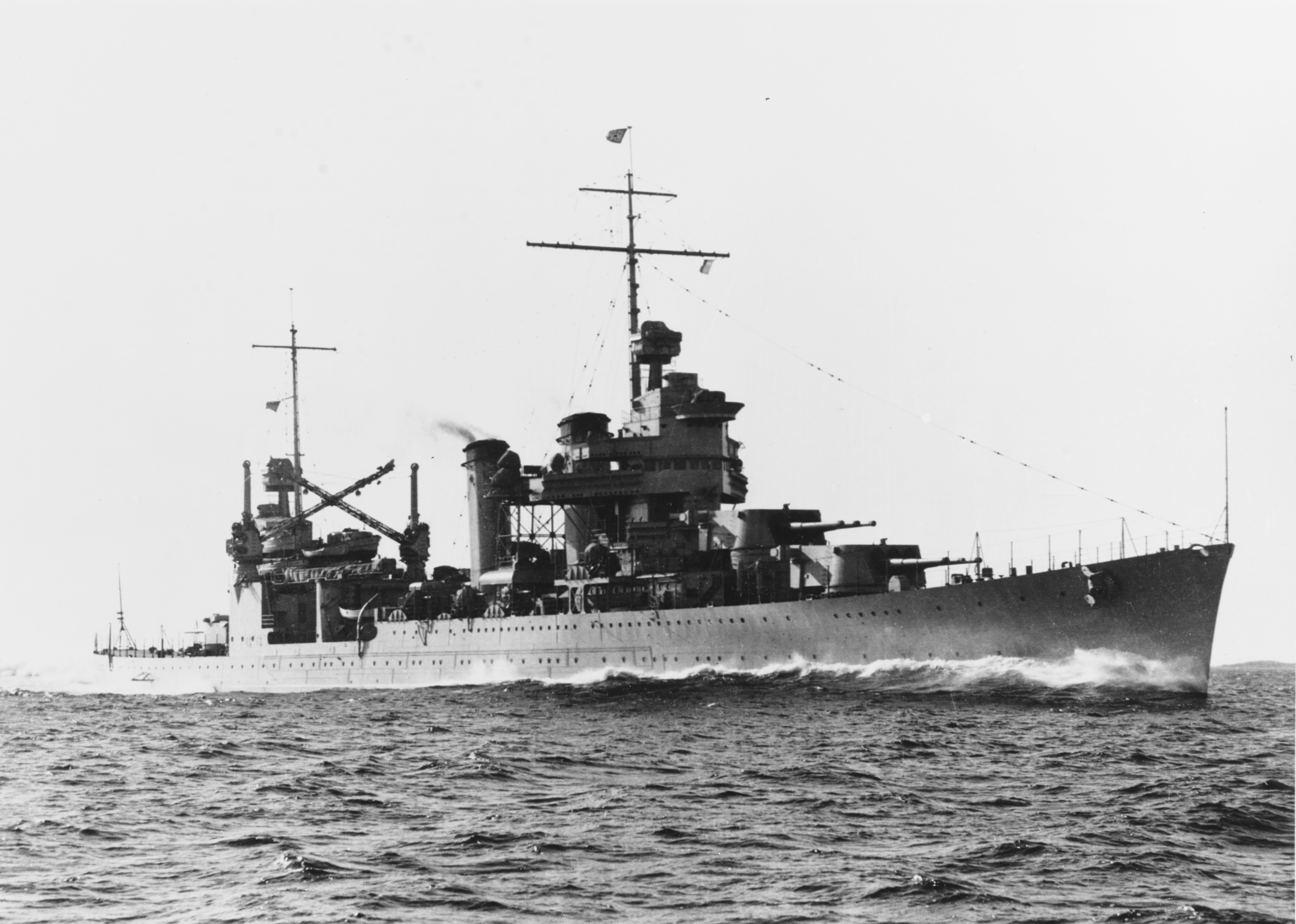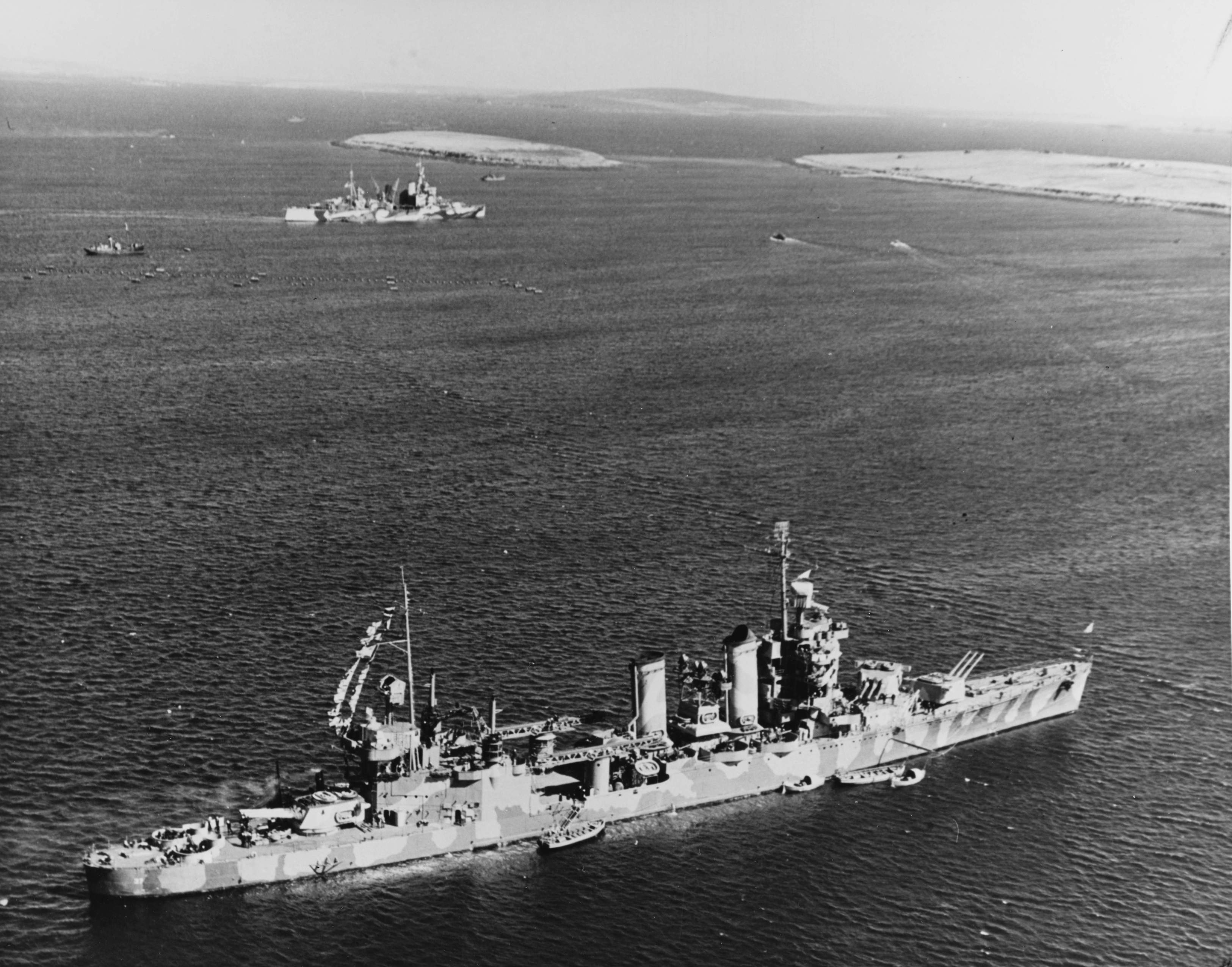 Tuscaloosa w Scapa Flow, w tle krążownik brytyjski London, 1942