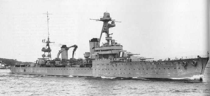 W kwietniu 1940 okręt wrócił na Morze Śródziemne do Tulonu, tam staje się okrętem flagowym zespołu operacyjnego X (pod dowództwem admirała Godfroya). Wraz z Tourville przechodzi do Bizerty, później do Aleksandrii. Zespół X rośnie, do eskadry dołączają pancernik Lorraine, krążowniki Duguay-Trouin i Suffren wraz z niszczycielami. Dochodzi do wspólnych, francusko-brytyjskich ćwiczeń. Planowane są wspólne akcje (między innymi akcja desantu na Kretę – uderzenie wyprzedzające – zabezpieczenie wyspy na wypadek ataku Włochów - odwołane). 25 czerwca 1940 wchodzi w życie zawieszenie broni między Francją i Niemcami. Okręty francuskie są w trudnej sytuacji. Trwają rozmowy w sprawie przejścia ich do Bejrutu – Brytyjczycy odmawiają. 3 lipca Francuzi dowiadują się o ataku brytyjskim na ich flotę w Mers-el-Kebir. Po negocjacjach w dniu 4 lipca (na początku pod groźbą dział ze strony Brytyjczyków), już 5 lipca z okrętów francuskich wypompowano paliwo i zdemontowano zamki dział. Część marynarzy zwolniono do domów (zostali odesłani na statkach). Okręty stojące w porcie w Aleksandrii szczęśliwie unikają trafień podczas włoskich bombardowań. Czerwiec i lipiec 1942 upływa pod znakiem ewakuacji okrętów brytyjskich z Aleksandrii (Rommel jest już 100km od portu). Do sierpnia w porcie pozostają tylko rozbrojone okręty francuskie, później Brytyjczycy wracają. Pod koniec 1942 po zajęciu francuskiej Afryki Północnej przez aliantów rozpoczynają się negocjacje odnośnie powrotu okrętów francuskich do ich baz w Afryce . Następuje to dopiero w maju 1943.