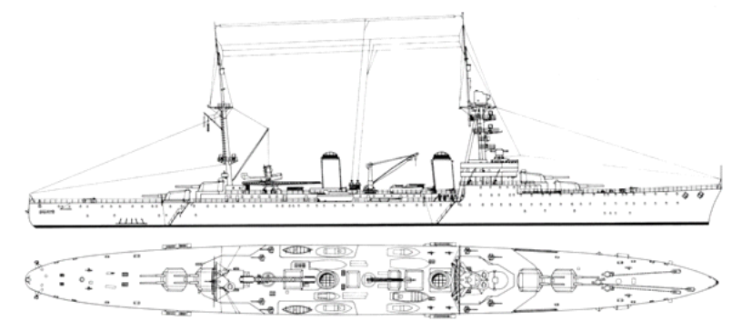 Uzbrojenie: 4 x 2 x 203mm (150 pocisków na działo), 8 x 1 x 75mm (500 pocisków na działo), 8 x 1 x 37mm (1000 pocisków na działo), 2 x 3 wyrzutnie torped 550mm (3 torpedy zapasowe),