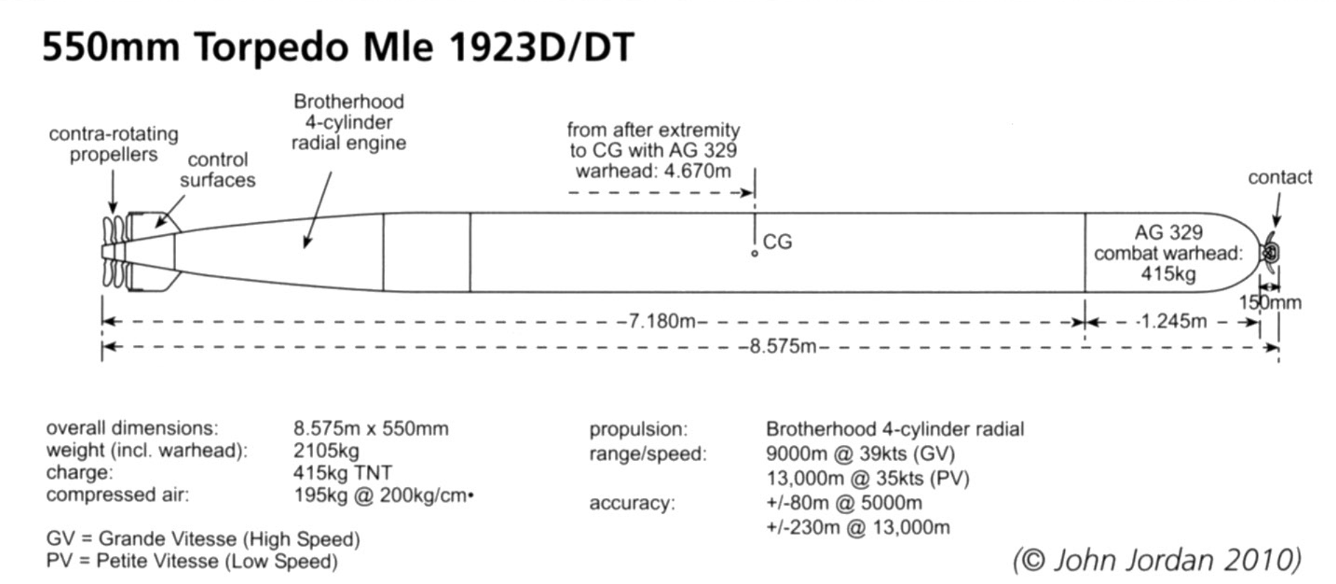 Okręty posiadały dwie potrójne wyrzutnie torped. Odpalanie następowało z głównego stanowiska dowodzenia. Jednostki były wyposażone w 9 torped, z czego sześć było załadowanych w wyrzutniach, a pozostałe stanowiły zapas. Krążowniki były wyposażone w torpedy model 1923D kalibru 550mm (do takich torped przystosowane były również wyrzutnie polskich niszczycieli ORP Wicher i ORP Burza). Sama torpeda ważyła 2068kg, ładunek wybuchowy z kolei to 310kg. Długość całej torpedy to ponad 8,5m. Przy 39w. Torpeda miała zasięg 9000m, natomiast przy 35w. zasięg wzrastał do 13000m.