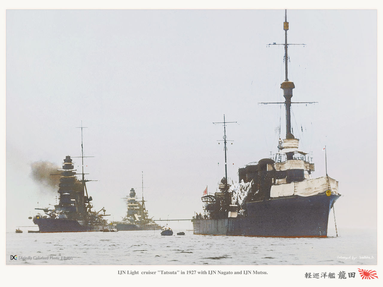 Tenryū (3900 ton, 33 węzły, 4x140mm, 6 wyrzutni torped 533mm) – nowoczesny, mały krążownik z 1919 roku